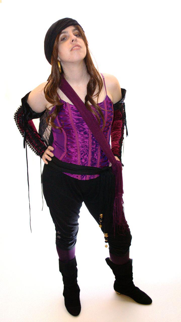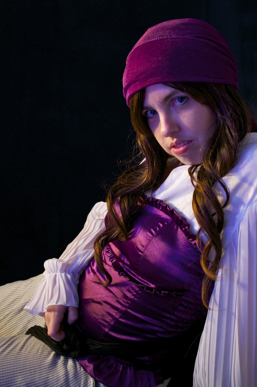 This is the outfit that started me on my pursuit of a pirate character. My husband had surprised me with the beautiful burgundy velvet sleeves, laced with black ribbons, as a Valentine’s Day gift in 2011. I’m trying to be relatively modest in this photo because, rather than wearing a corset like I do now, all I had at the time that matched the sleeves was a burgundy-coloured lace bra and it’s perhaps a little too personal for me to share that much with my readers!