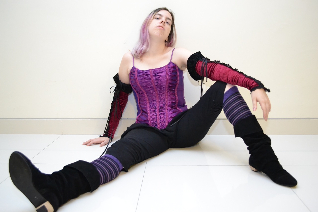 The black over-the-knee length shorts were something I had bought a couple of years previously, and had dubbed “pirate pants” at the time because of the buttons that sat on the knee. Striped purple socks felt pirate-y to me, too. Then there was a little jewellery to accessorise.