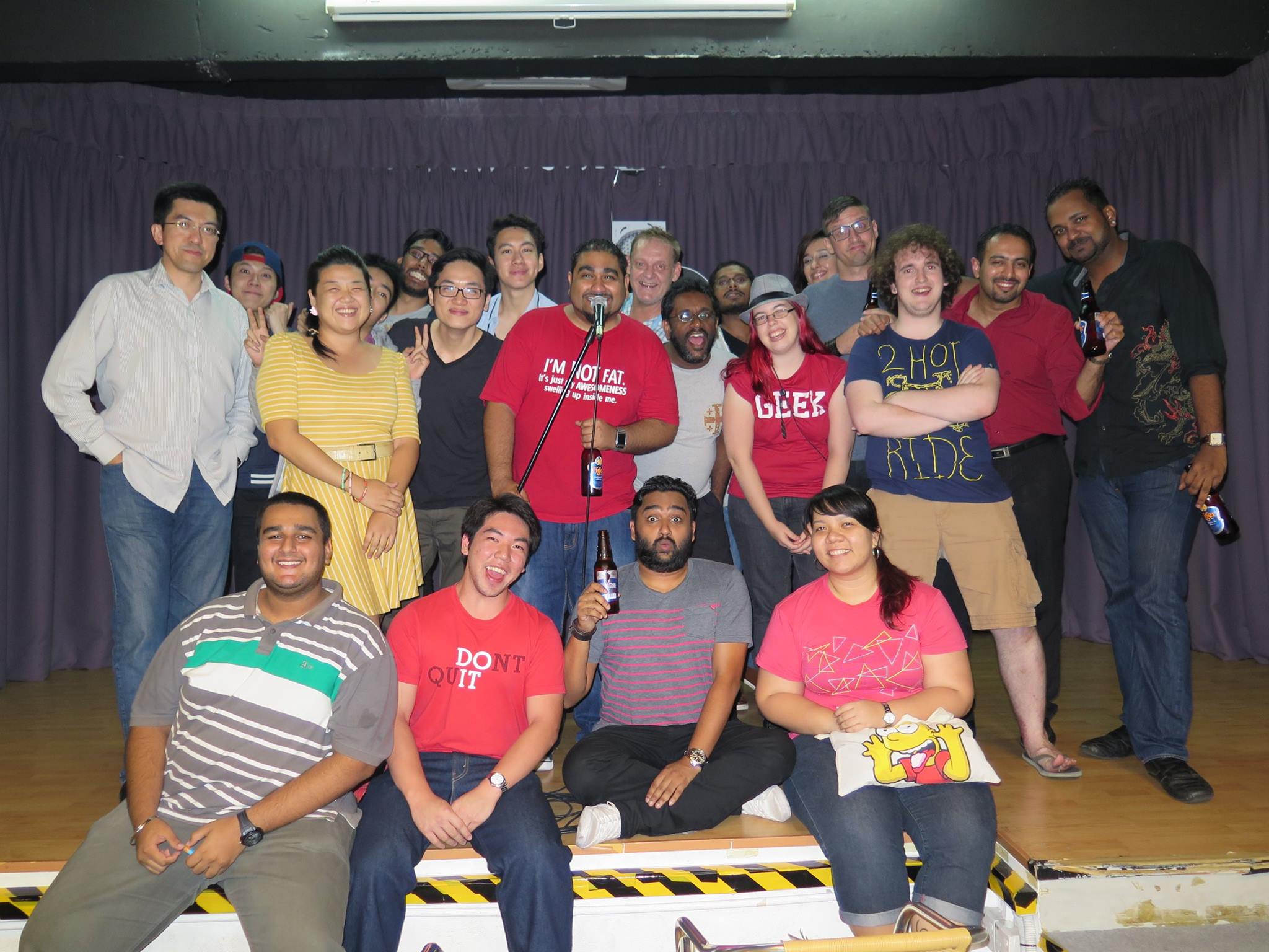 The stand-up scene in Kuala Lumpur is so big now that it can be a struggle to get an open mic spot, since there are so many performers to compete with. For example, photos like the two below include perhaps half of the people who perform stand-up at the regular comedy nights (though not everyone in the photos perform stand-up, the majority of them do).